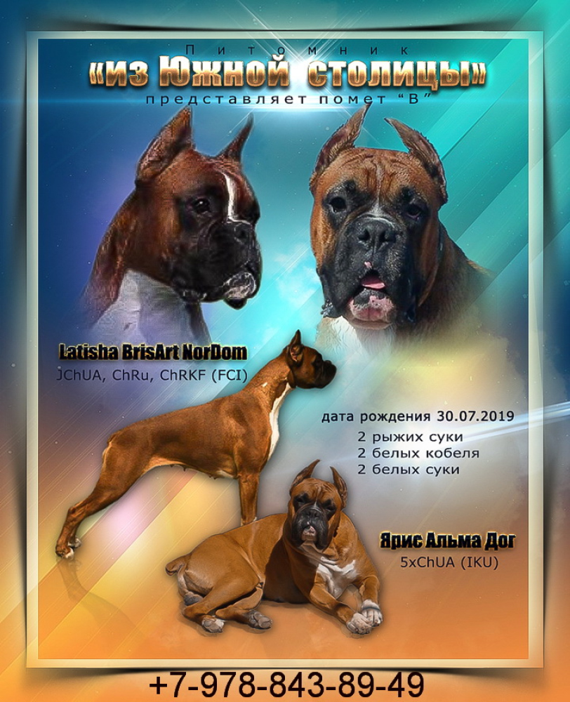 Продаем щенков немецкого боксера: 2 рыжие суки и белый кобель.