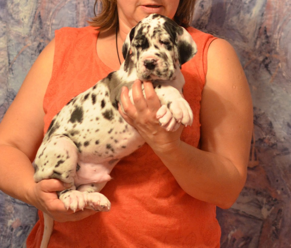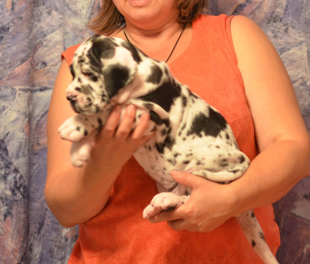Щенки немецкого дога от титулованных производителей.Кобель мраморного окраса,сука черного окраса.Д.р. 26.07.2019г.Крупные,костистые щенки ,перспективны для выставок.Документы РКФ.Помощь в доставке.